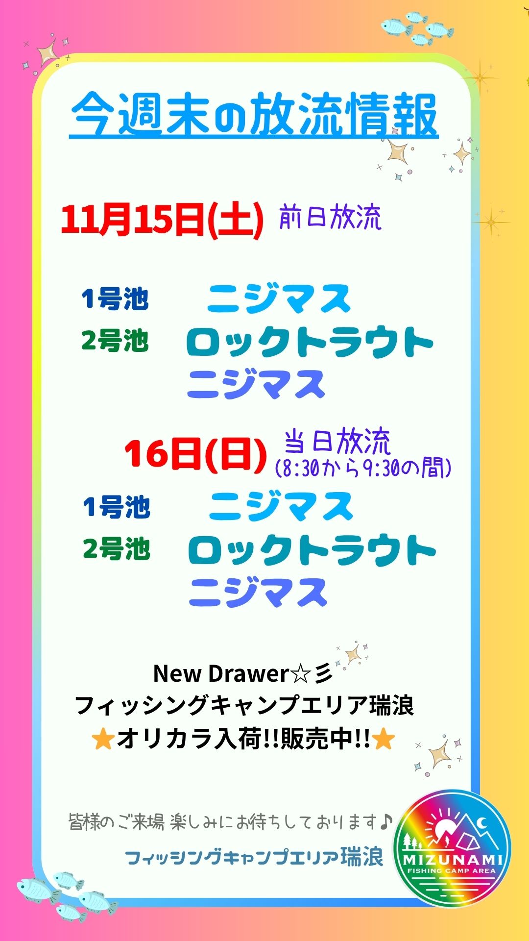 【フィッシングエリア】 営業時間 7:45~16:30(17:00閉場)定休日:年中無休(夏季休業期間有り)