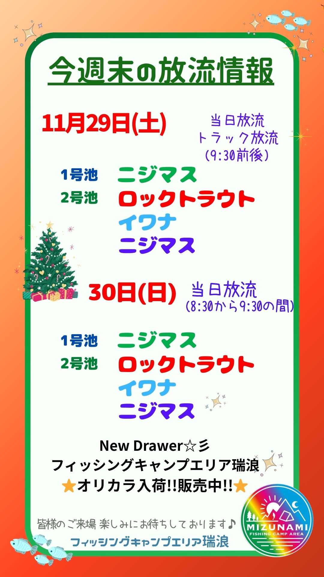 2025年11月29日(土)30日(日)放流情報🐟