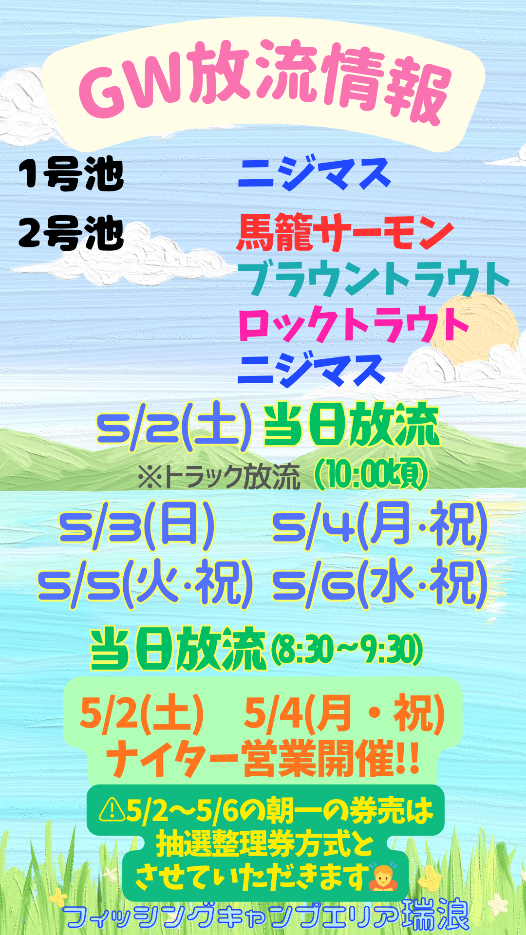 【フィッシングエリア】 営業時間 7:45~16:30(17:00閉場)定休日:年中無休(夏季休業期間有り)